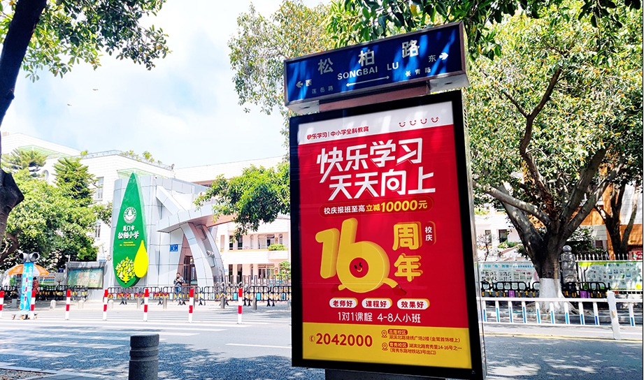 介紹:快樂學(xué)習(xí)全城多個黃金路段投放,覆蓋廈門各大中小學(xué)周邊路段及交叉口,定位精準(zhǔn)人群,點對點投放。