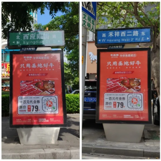?;嘏c天藝傳媒強強聯(lián)手,精準(zhǔn)宣傳將?;厝A僑海景城店附近的城市路名牌戶外媒體進(jìn)行定點宣傳。